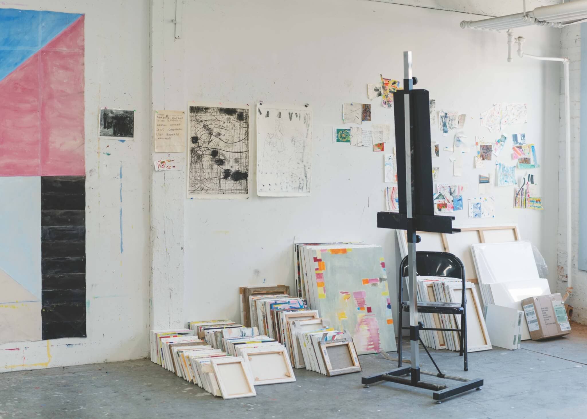 Canvases and works in progress line the walls of Jo Ann Rothschild’s studio.