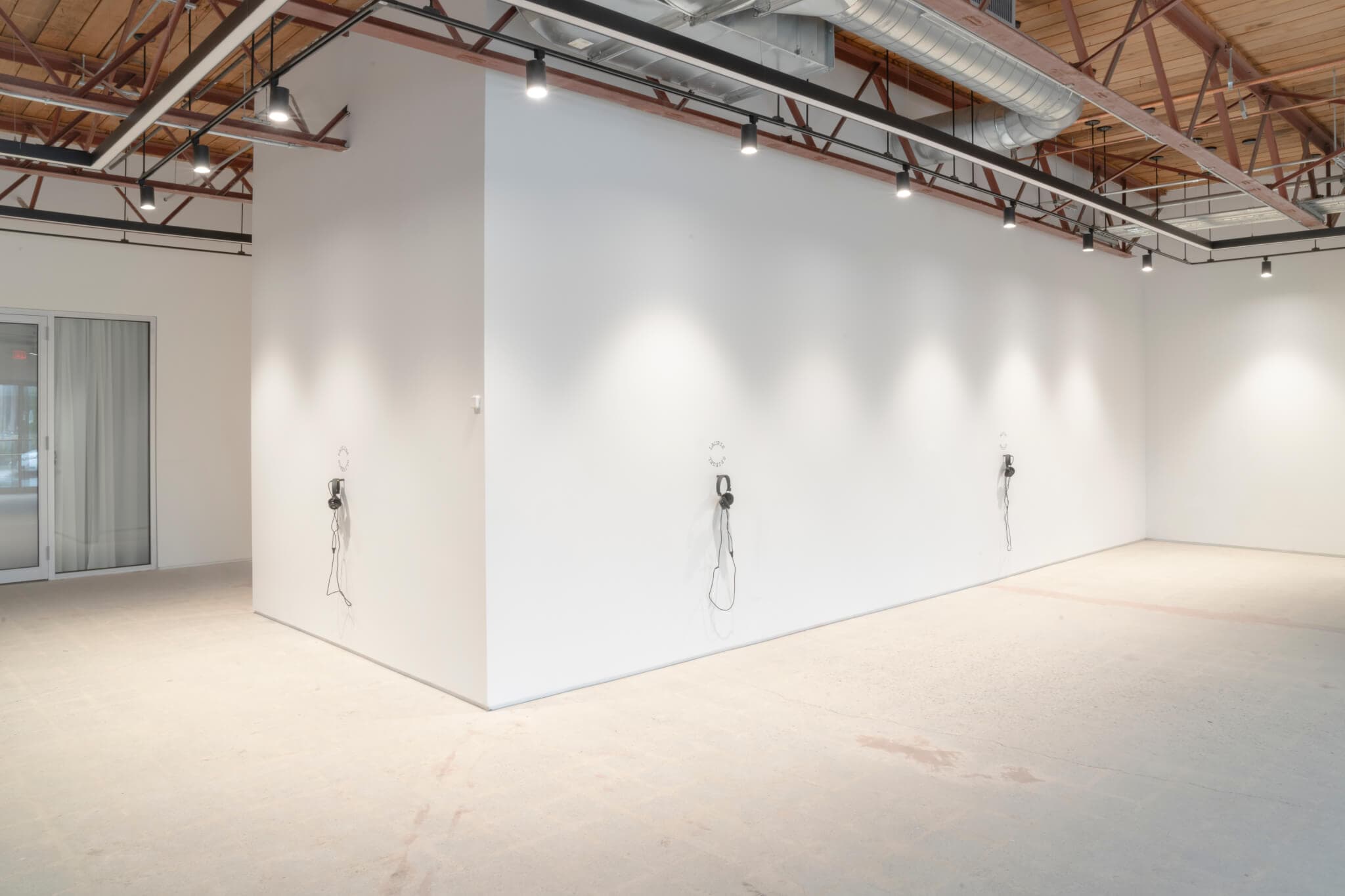 I was fortunate to visit on opening night, when DeLuca and his collaborators, Qais Assali and Enongo A. Lumumba-Kasongo (also known as the Vespers Band), were in mid-performance of Lucier’s Vespers, composed in 1967. The museum’s storefront windows face the street, and I peered in to see people lining the walls, three rows deep. With no physical art to gaze at, the guests, myself included, were more likely to notice each other. This raises the consideration of intersubjectivity, a reminder that music is first and foremost a shared experience that can feel vulnerable and revelatory. The audience heard a series of clicks emanating from each performer’s sonic dolphin (Sondal) devices as they gradually, over twenty minutes, found each other.