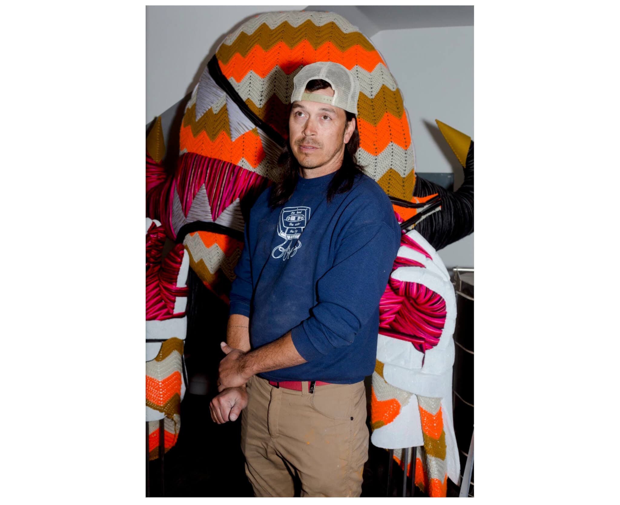 Cannupa Hanska Luger inside his studio in Glorieta, New Mexico. Photo by Char Klein for Boston Art Review.