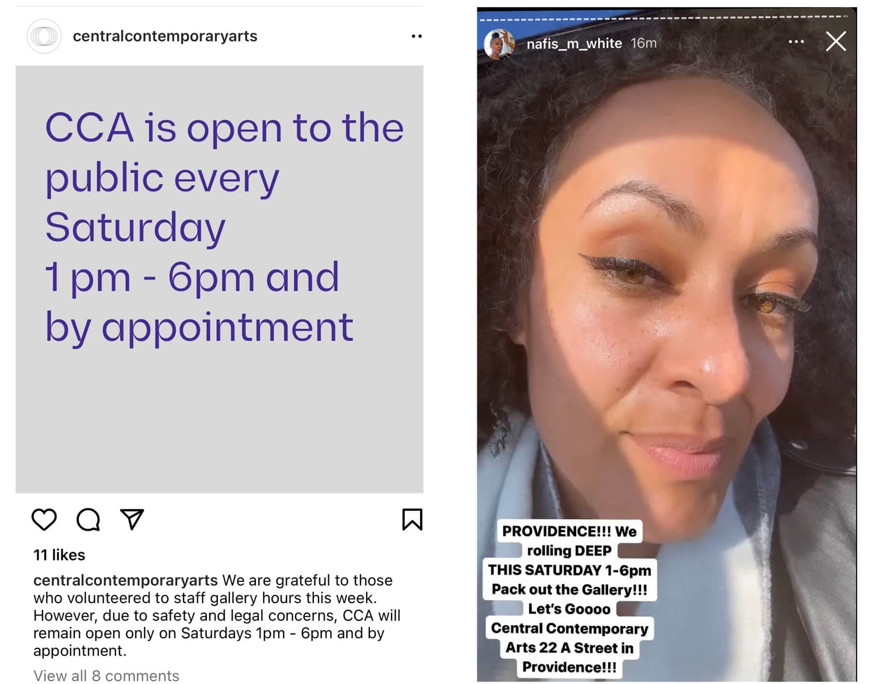 White is calling upon Providence to attend on Saturday, March 18, to pack the gallery and see off the show. Because, as Sands wrote in the comments below both of CCA’s Instagram statements, “CCA [is] under no contractual obligation to staff the gallery for those hours,” we will have to wait and see whether the public will have access to the exhibition on Saturday. White is confident, however, that they will be open, declaring emphatically, “they have to open the doors.”