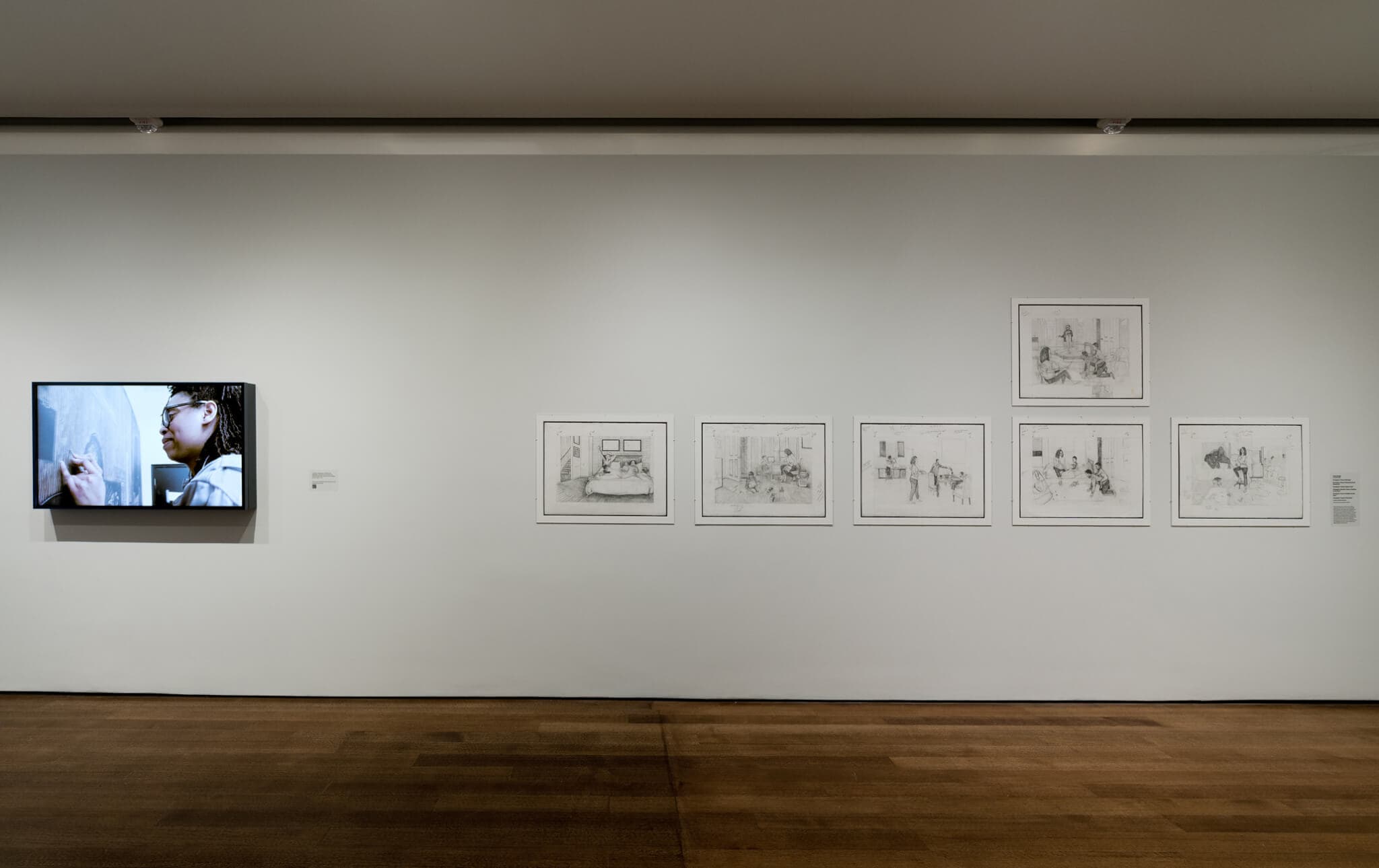 Three years later, as part of the Harvard Art Museums’ public display, “LaToya M. Hobbs: It’s Time,” all five scenes of Carving Out Time, along with their preparatory sketches, can be appreciated in concert for the first time. I met with Hobbs over Zoom after the show opened. It was a characteristically dreary day in London, while in Baltimore, Hobbs shifted around her studio in her home’s basement, willing her laptop battery to last the length of our call. It was our first time talking, but somehow I felt connected to her; Scene 5 had lingered feverishly since my first encounter with it.