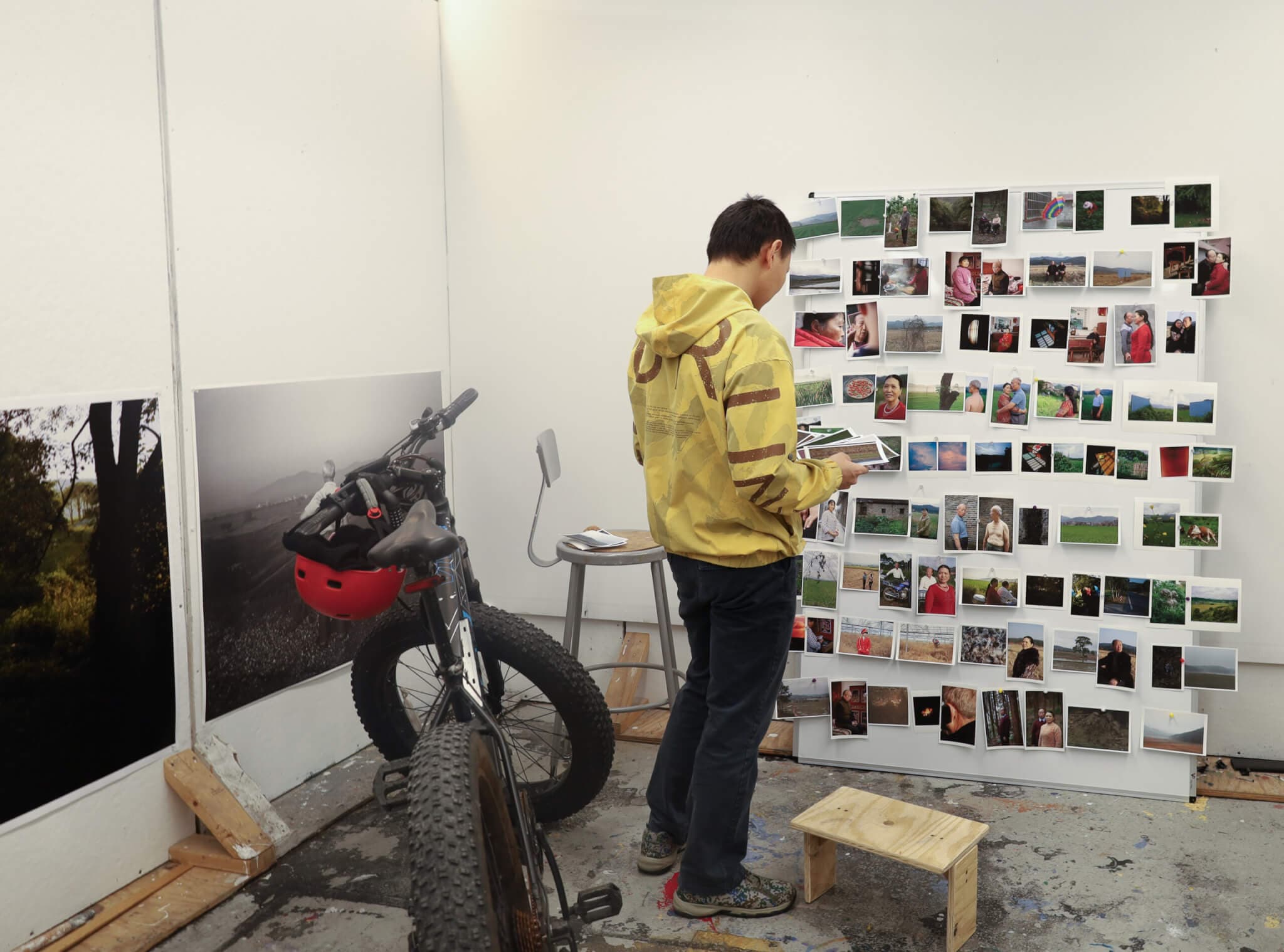 Andrew Zou, a second-year MassArt student, is flipping through and organizing his photographs for his series To Love, To Remember, which chronicles the change in seasons. Photo by Yoko Zhu.