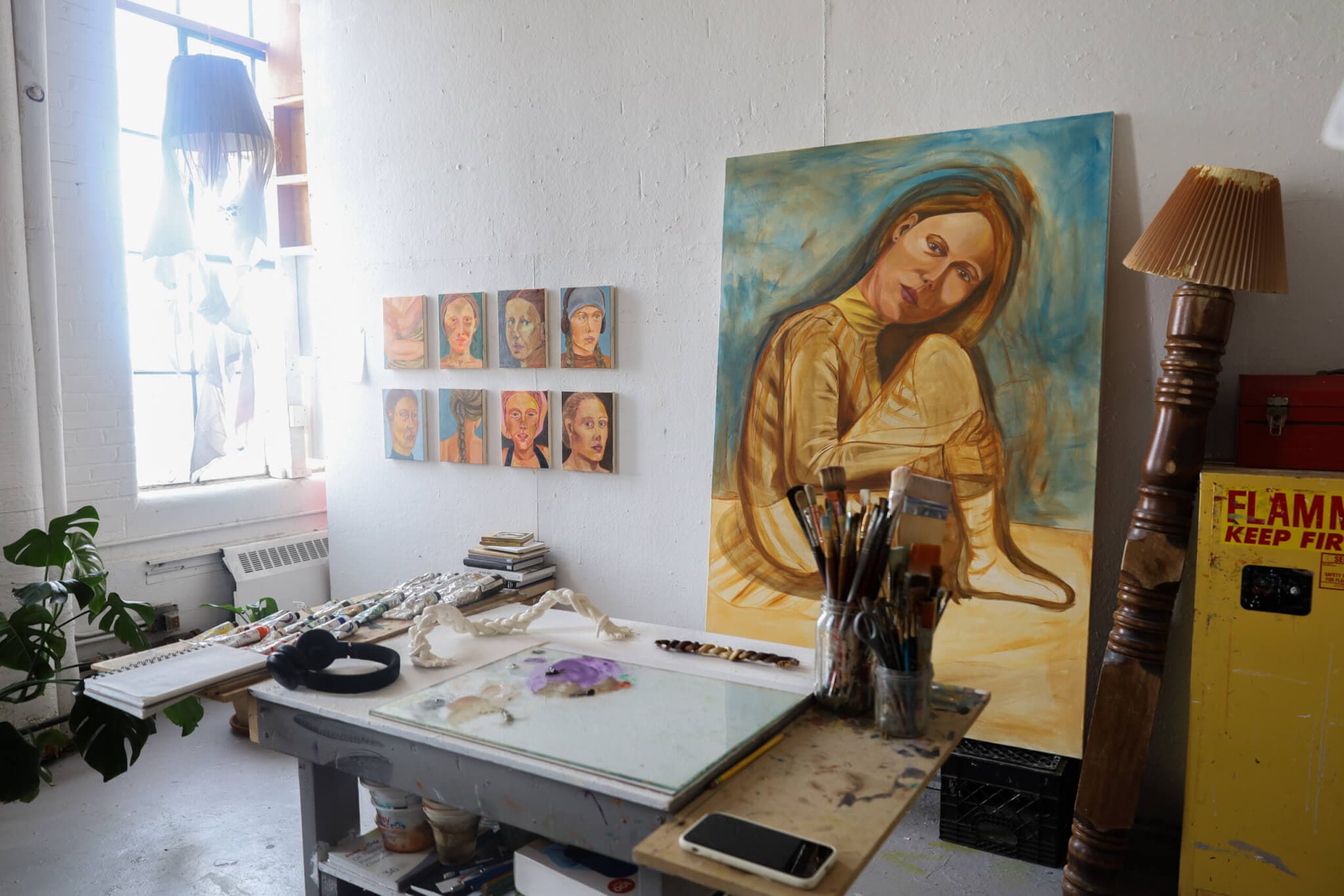 Inside the studio of Scout Curtin, a first-year painting student at Boston University. Photo by Yoko Zhu.