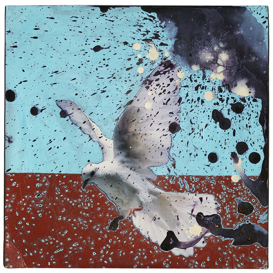 “Trace” relies on cloudy abstraction, splattered and diluted paint that transforms the surface of everyday materials. The effect is a saturated spontaneity, something between the permanence of the solid organic and the dissipation of water vapor. This fluidity is product of meditative repetition.