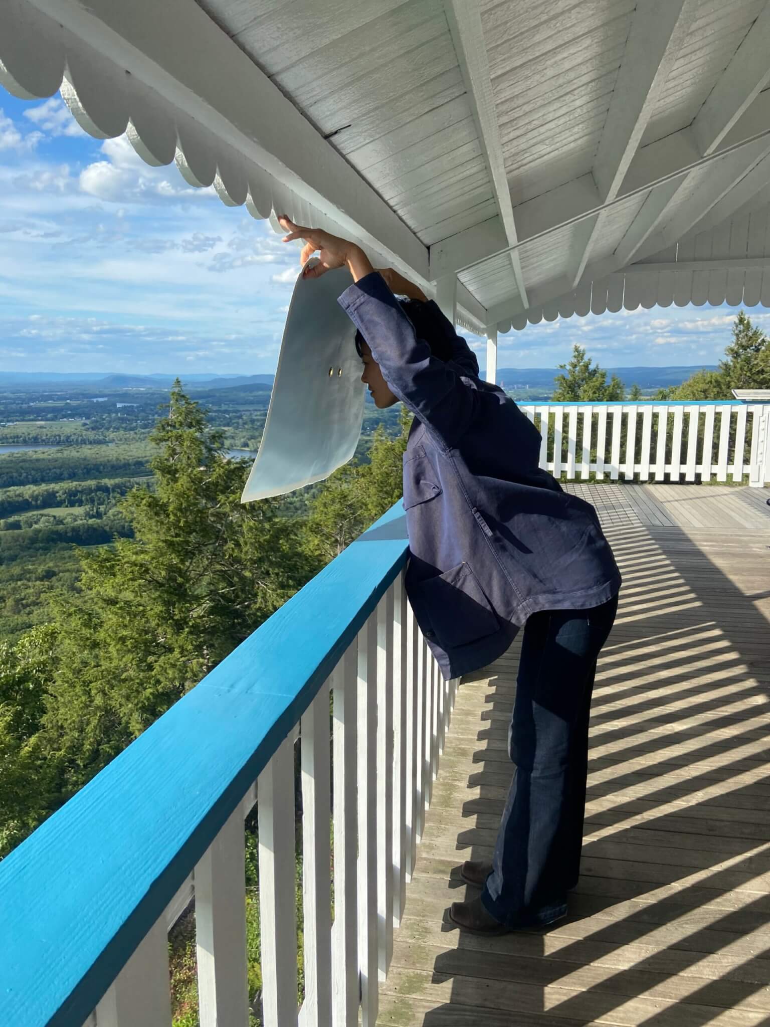 These moments invite questions about the exhibition’s seemingly un-problematized relationship to history. Throughout, I found myself grappling with the presentation’s relationship to its historical trappings—the many references to nineteenth-century art and Victorian-era attitudes toward health and the outdoors present both at the site and in the curatorial framing. (A critical examination of the visual codes and religious and cultural norms that fueled the Industrial Revolution has underpinned several recent scholarly accounts of the period’s unchecked resource extraction and its formative effects on climate change.) Do the organizers consider their efforts  in continuity with the Hudson River School’s idyllic pastoral representations? The contemporary reception of this era of landscape painting acknowledges how these images inspired nationalism and employed visual conventions of domination (aerial views, for example) to fix the landscape in a settler-colonial gaze. At the same time, these works stirred ecological consciousness and appreciation for the natural world. Animating connections with the environment is a primary objective at “The Summit Show,” too.