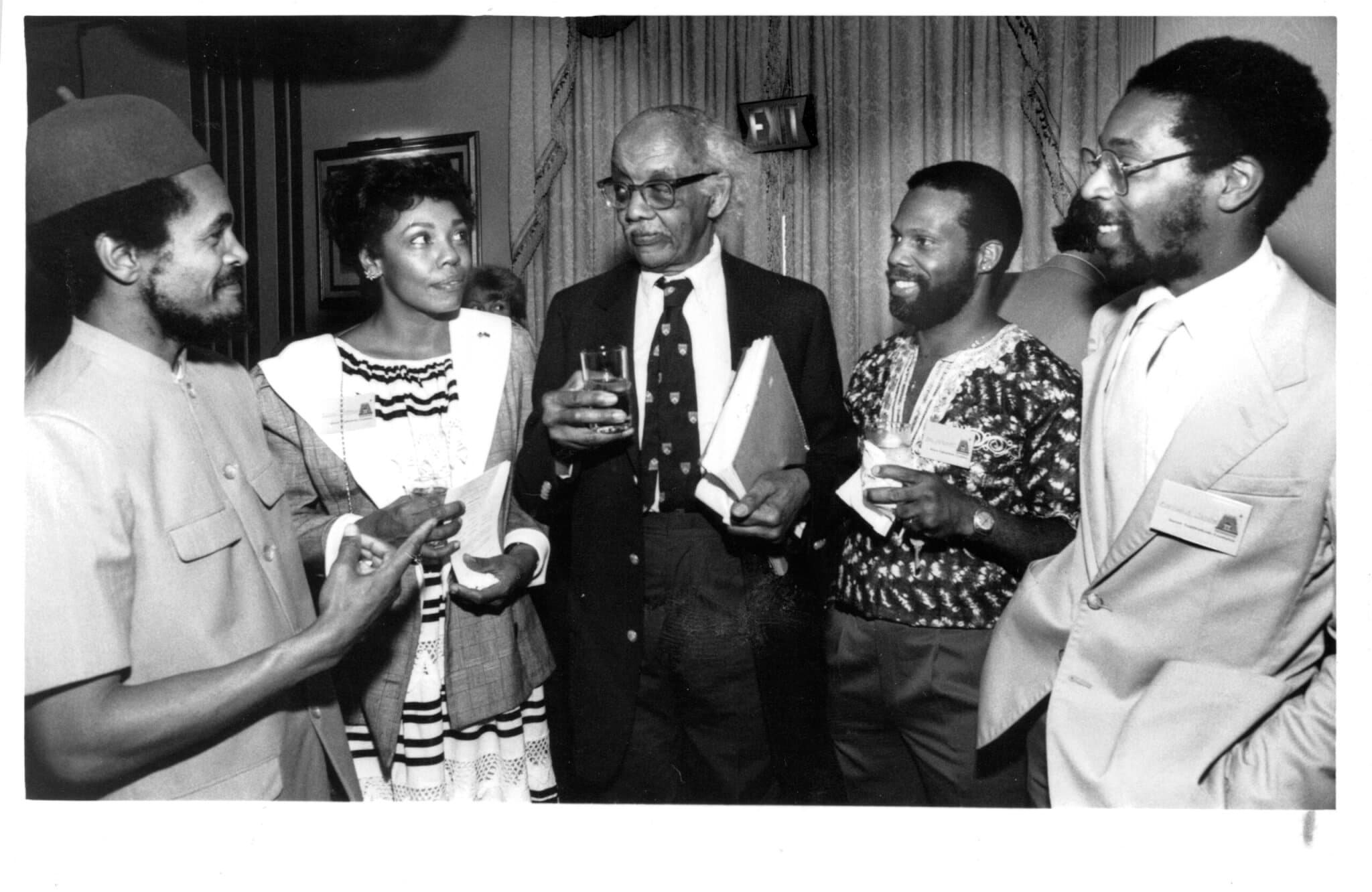 Members of the Boston Collective, (left to right) Napoleon Jones-Henderson, Susan Thompson, Allan Rohan Crite, Paul Goodnight, Reginald L. Jackson in 1982. Photo by Aukram Burton.