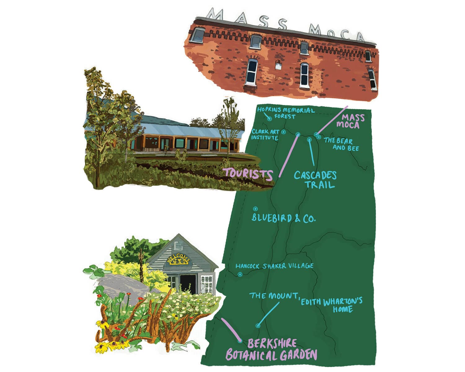 Like urbanites often do, my husband and I spent years dreaming of an escape to rural, forested solitude. But we are both visual artists, so this dream gave us pause—how could we leave our beloved urban centers? As we debated, one place lingered in our minds: the Berkshires. We visited in 2015 and discovered that this slice of Western Massachusetts is essentially a cultural hotspot embedded in the woods. Finally, in 2022, after two decades in Chicago and another four years in Detroit for my graduate study (and a pandemic), we leapt. We’ve been here in the Berkshires, specifically in North Adams, for a little more than three years now. To our surprise, our cultural and nature-based lives have never been more abundant. We hoped it would be this way, but we are still surprised at all the ways it exceeds our expectations every week. Ballet, concerts, dance, theater, major visual art exhibitions at three world-class museums, galleries that range from DIY to legendary…it’s remarkable. And you could hike, bike, or kayak to a lot of these events, if you wanted. The Appalachian Trail cuts through our town, but hundreds of miles of other trails and waterways run through the Berkshires. And, for the urbanites still in our hearts, we are only three hours from both Boston and NYC.